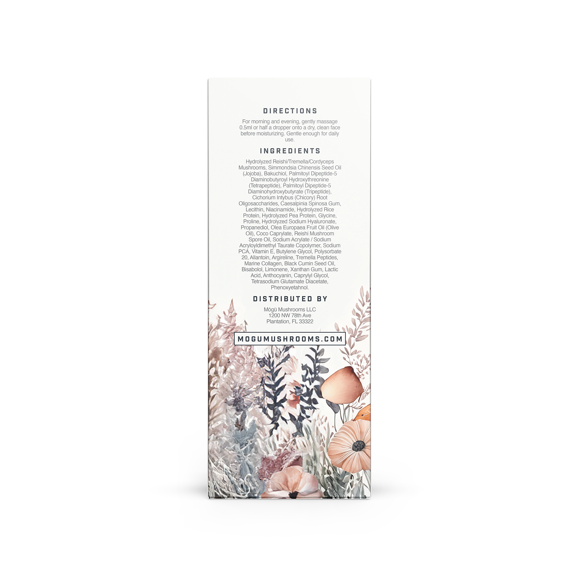 The included mushroom face serum brings the same functional philosophy to skincare, blending Reishi, Snow Fungus, and Cordyceps with advanced hydrators, antioxidants, and peptides to deeply nourish the skin, support barrier integrity, refine tone and texture, and promote visible radiance and long-term skin resilience — with Snow Fungus delivering superior moisture retention that exceeds hyaluronic acid.
